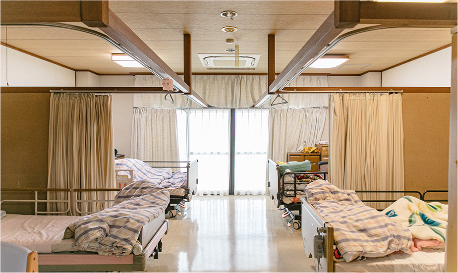 ショートステイは短期間の入所を受け入れるサービスです。入浴・排せつ・食事など日常生活の支援はもちろん、ご要望に応じて機能訓練も実施しています。原則、お部屋にはテレビ、タンス、冷暖房を完備。4人部屋をパーテーションで間仕切りすることで、プライベートで快適な空間を確保しつつ、完全個室型のショートステイよりも低料金でのご利用を実現しています。また、併設の特別養護老人ホームが開催する保育園との合同行事や季節の行事への参加など、楽しいひとときを過ごしていただける取り組みも行っています。 定員:4名