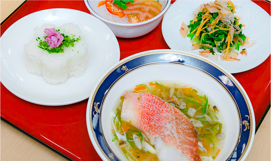 配食サービスは、お身体の状況により食事をつくることが困難になってしまった独居、もしくは老夫婦世帯を対象に、特別養護老人ホームやデイサービスセンターでご提供している栄養バランスのとれた昼食をお届けしています。当法人の配食サービスの特長は、地産地消へのこだわり。京都産の農作物をふんだんに使った食事づくりは京都府からも認められ、当施設は「たんとおあがり 京都府産」施設として認定されています。また、こだわりのお食事をお届けするだけでなく、安否確認も行っています。